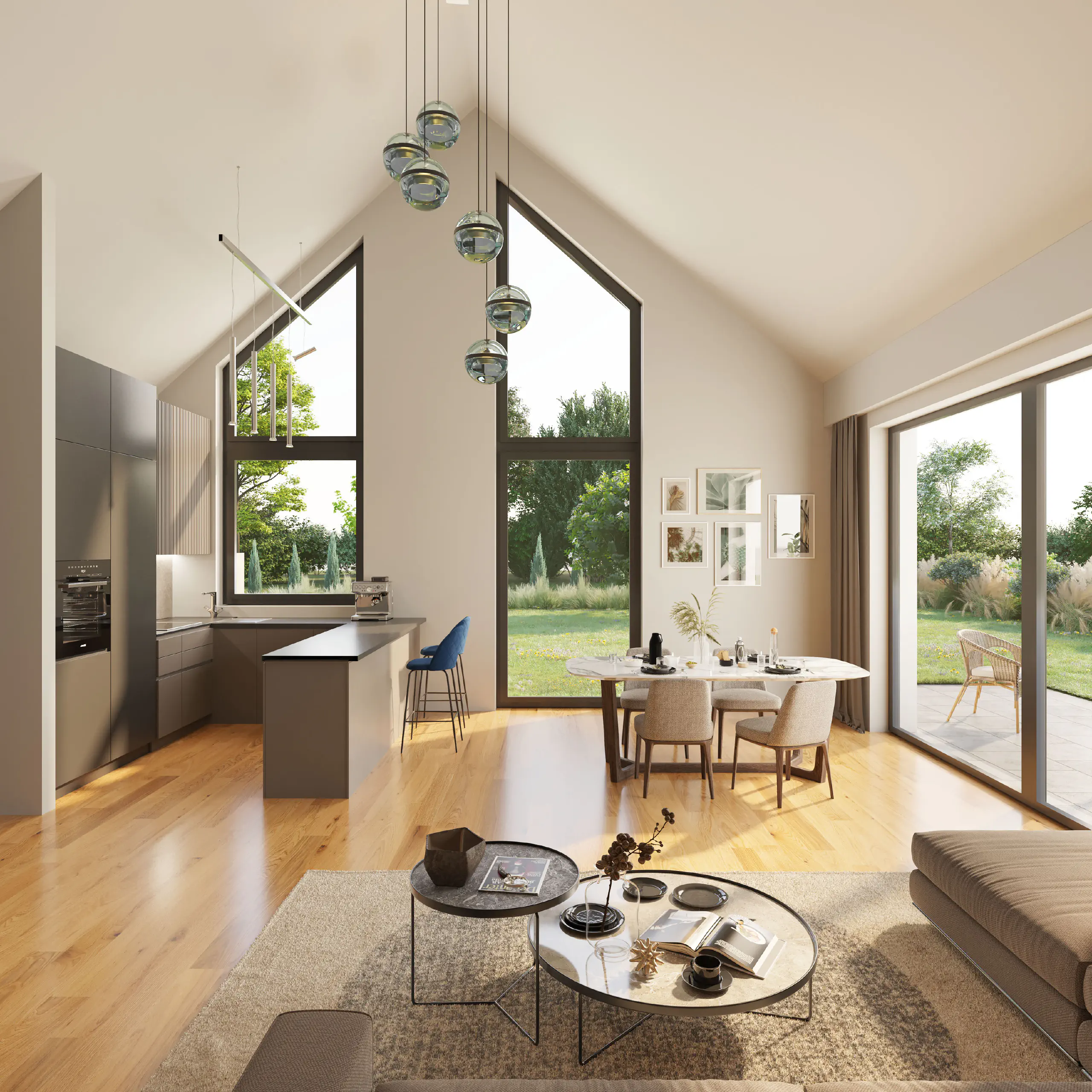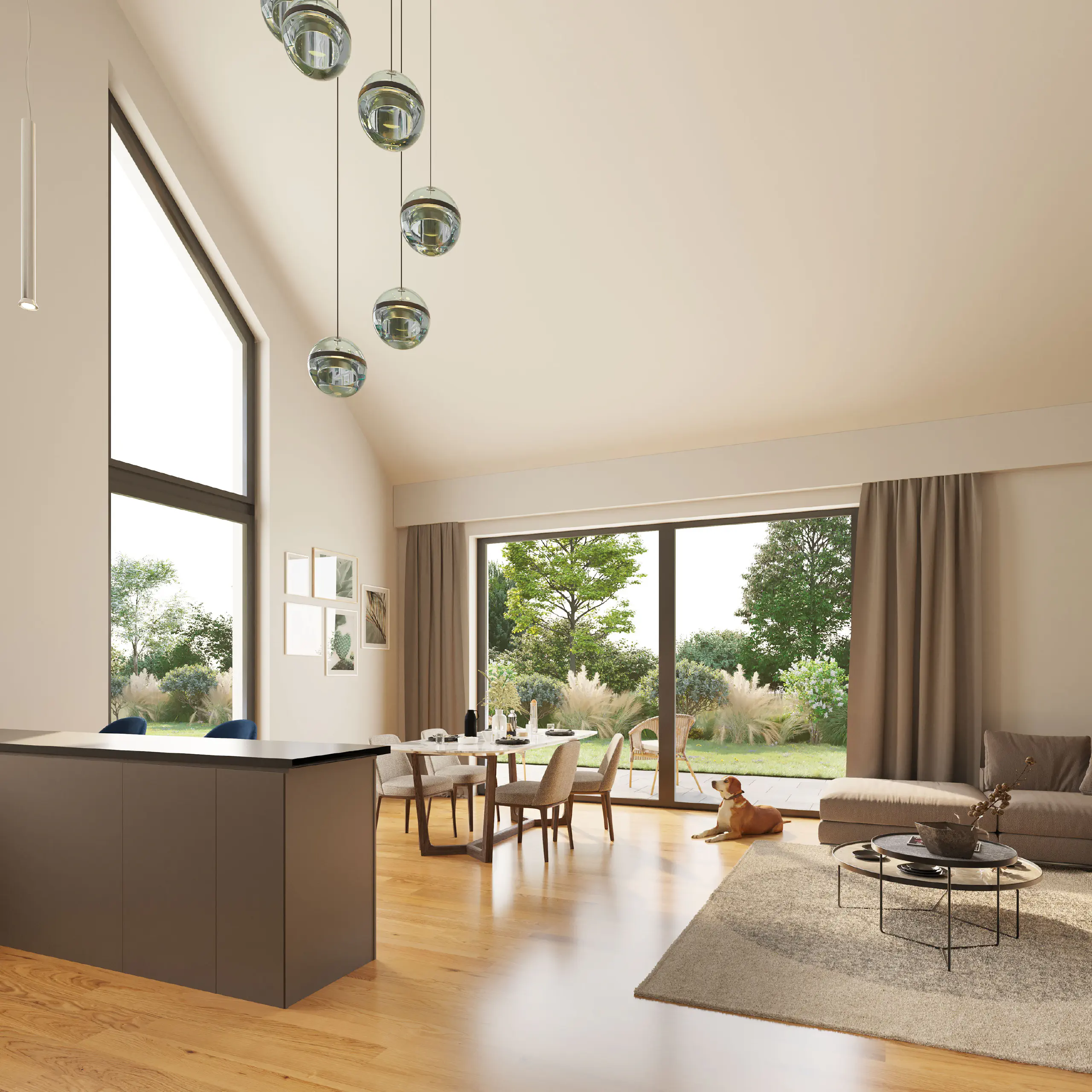 - wysoki na ponad 5 metrów, dobrze doświetlony salon z kuchnią;
