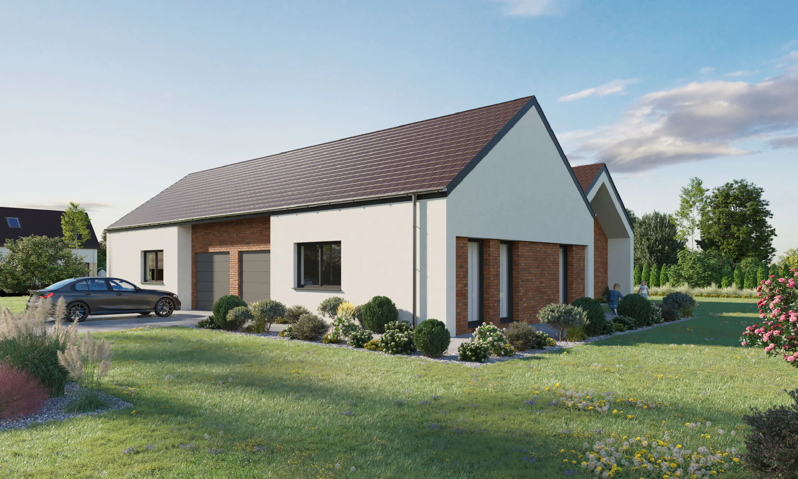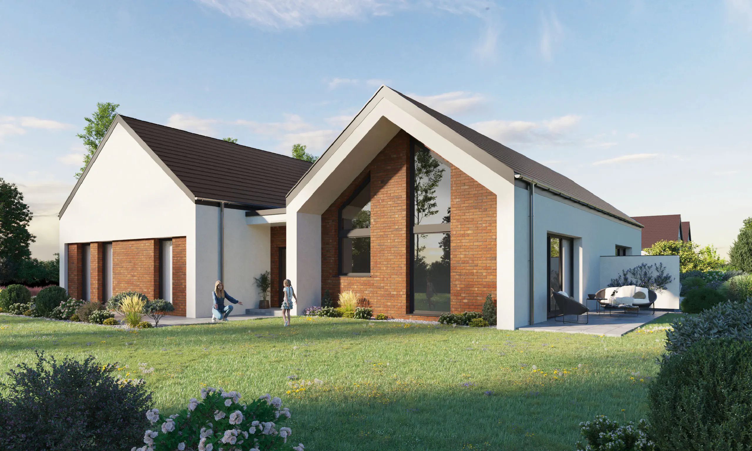 Dom jednorodzinny dwulokalowy, parterowy posadowiony na dużej działce. Ciekawa architektura, funkcjonalny podział na strefę dzienną i nocną. Świetne rozwiązanie dla mniejszych rodzin, par oraz singli, którzy chcą gościć przyjaciół i bliskich w przestronnym i wygodnym domu.